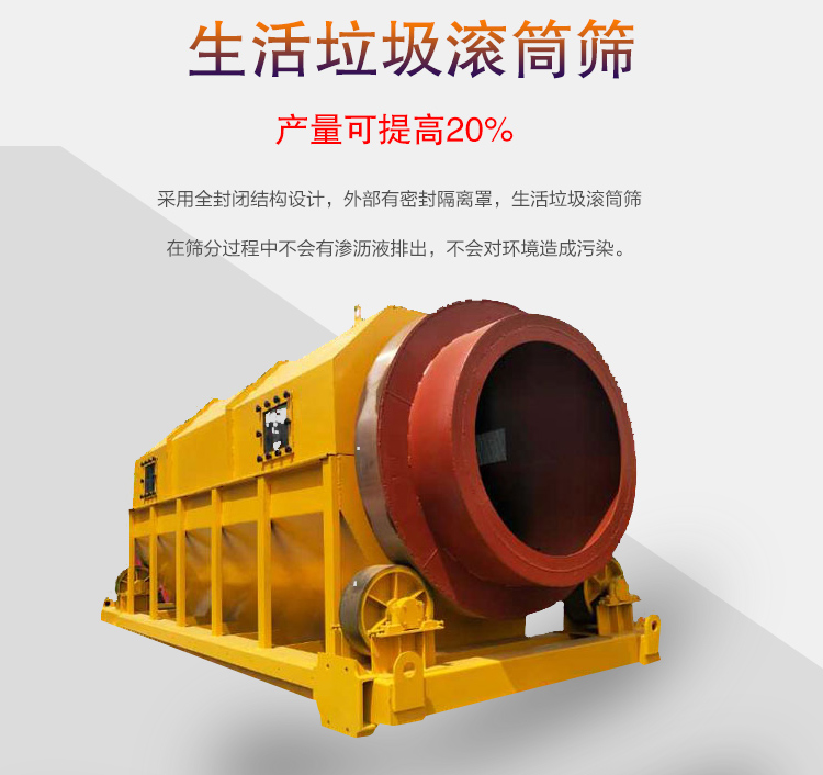 4、采用全封閉結構設計,外部有密封隔離罩,生活垃圾滾筒篩在篩分過程中不會有滲瀝液排出,不會對環境造成污染。
